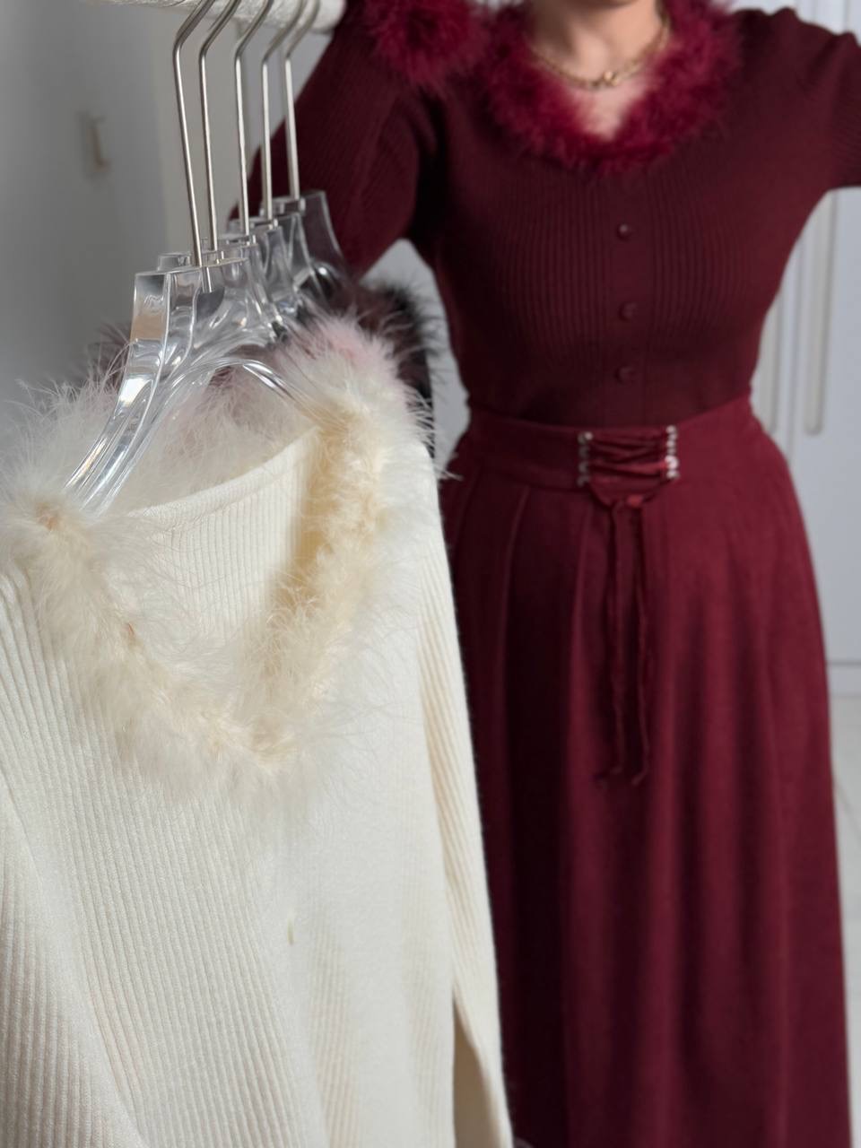بلوز بافت یقه و استین خز – ۱۰۰۶